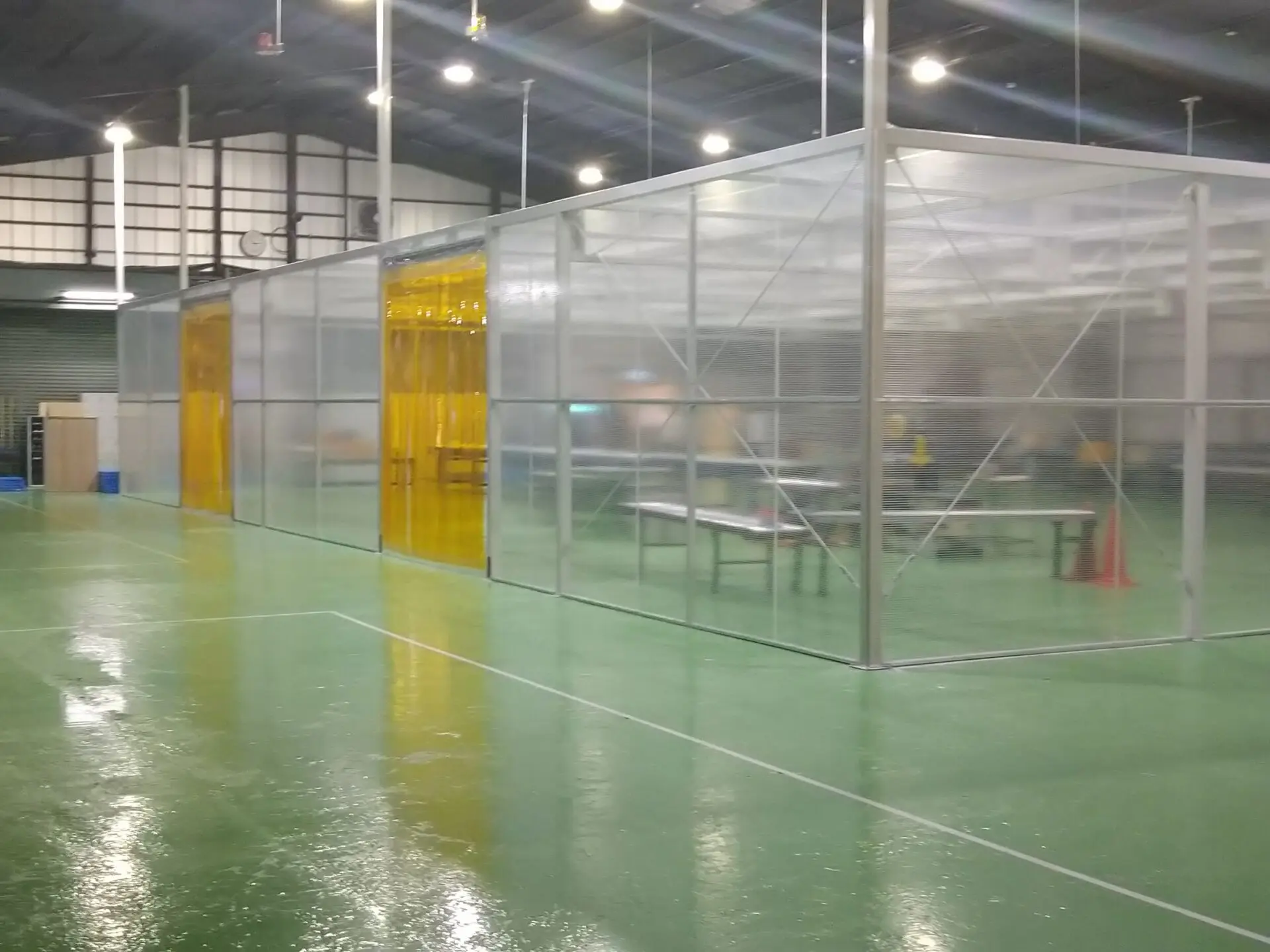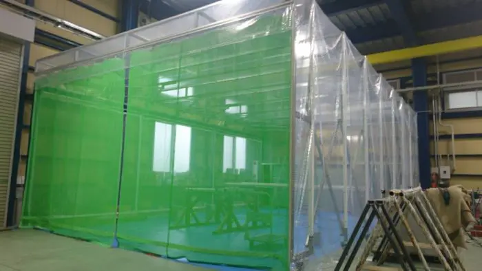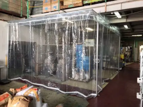 食品工場の清潔な部屋、塗装用の囲い、検査室など、用途に合わせた最適な仕様をご提案。 透明なビニールで外から中が見えるため、安全管理も容易です。